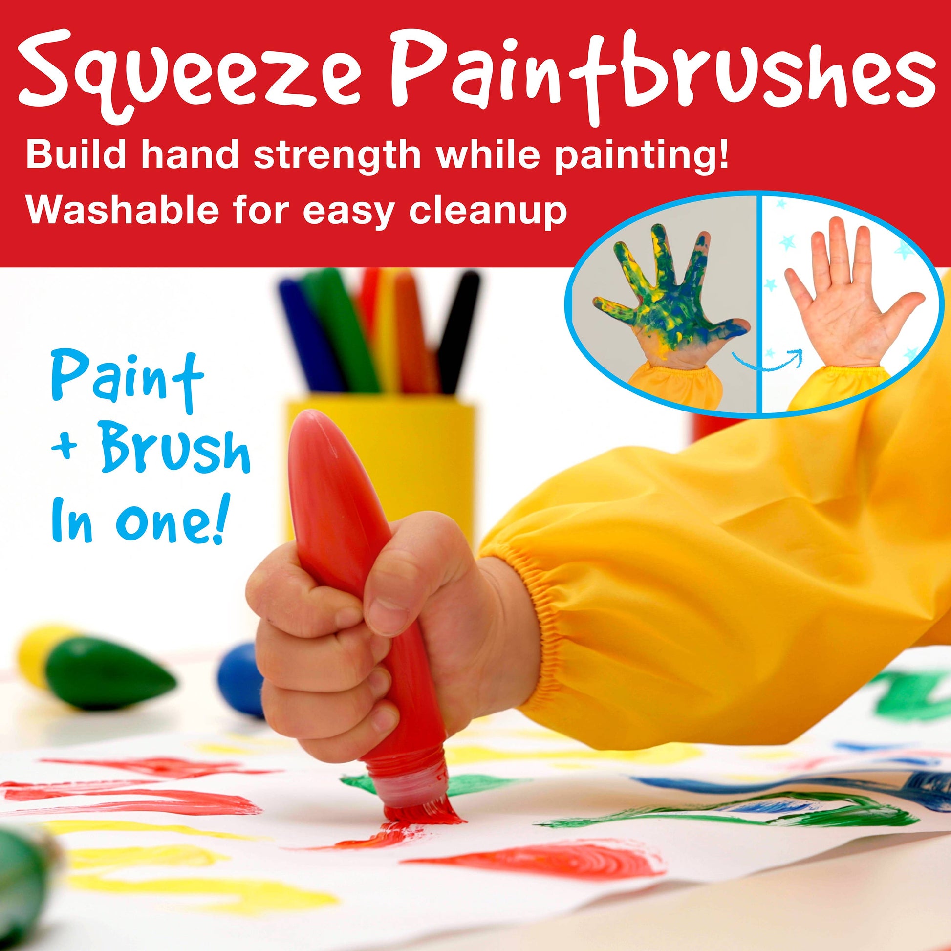 The Faber-Castell Little Creatives ArtPlay set features art materials made for little hands! All products are safety tested and washable. ArtPlay reinforces critical motor skills and visual perception that is so important in early childhood development. 6 x Jumbo Creamy crayons 6 x Jumbo Washable Squeeze Paintbrushes 1 x Coloring Activity Book 20 Pages 1 x pair Play Safe Scissors 1 x Waterproof Art Smock Ages 3+