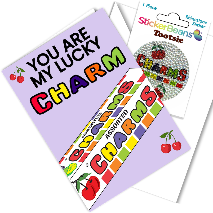 The Luck Charm Greeting Card & coordinating StickerBean are: