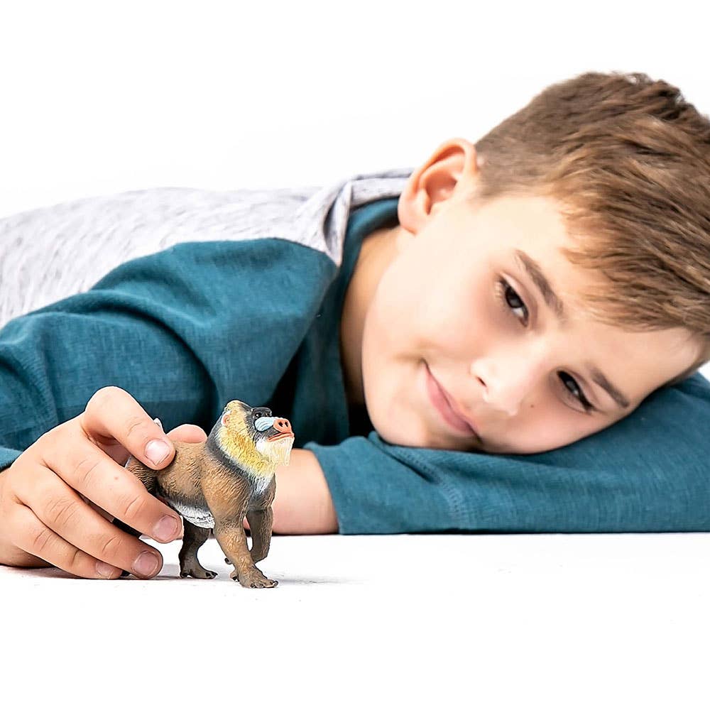 Characteristics: This male Mandrill figure is posed in a mid-walking stance. Its bright colors are on full display and its features from its distinctive facial ridges to its fur coat, are reproduced in exacting detail.