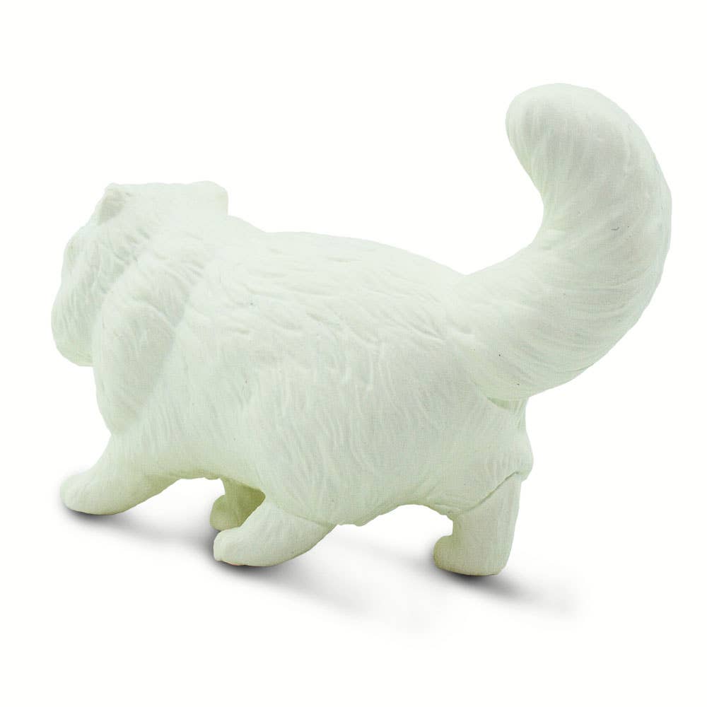 Size and Color: At 3 inches long and 2 inches tall, the Persian Cat figure is about the size of a credit card. Its coat is white, its ears and nose are peach-colored, and its eyes are green.